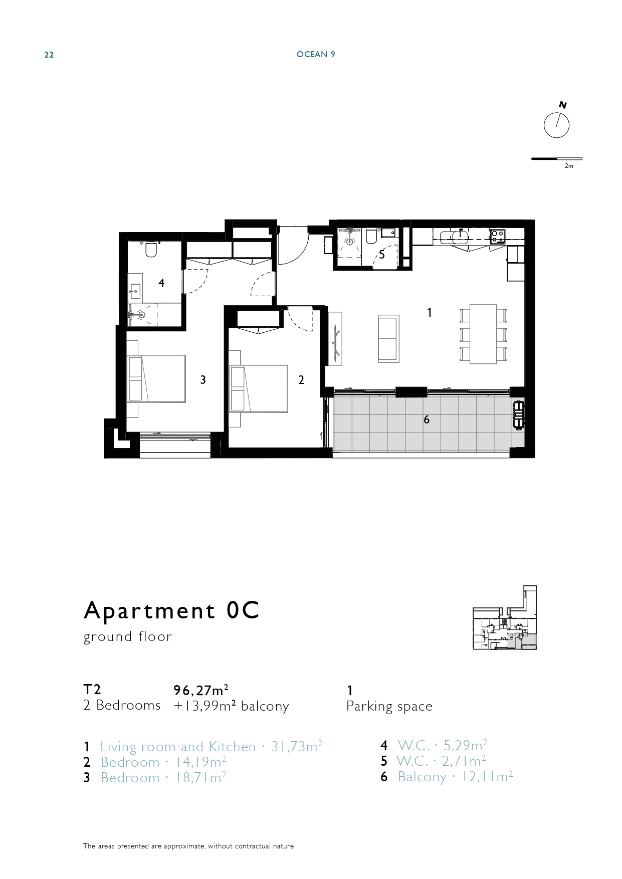 | 0C | RC | 2 bedrooms | 96,30m2 + 14m2 balcony | 1 | Reserved | View Floor Plan