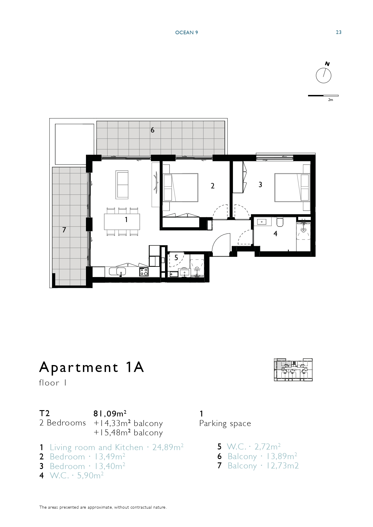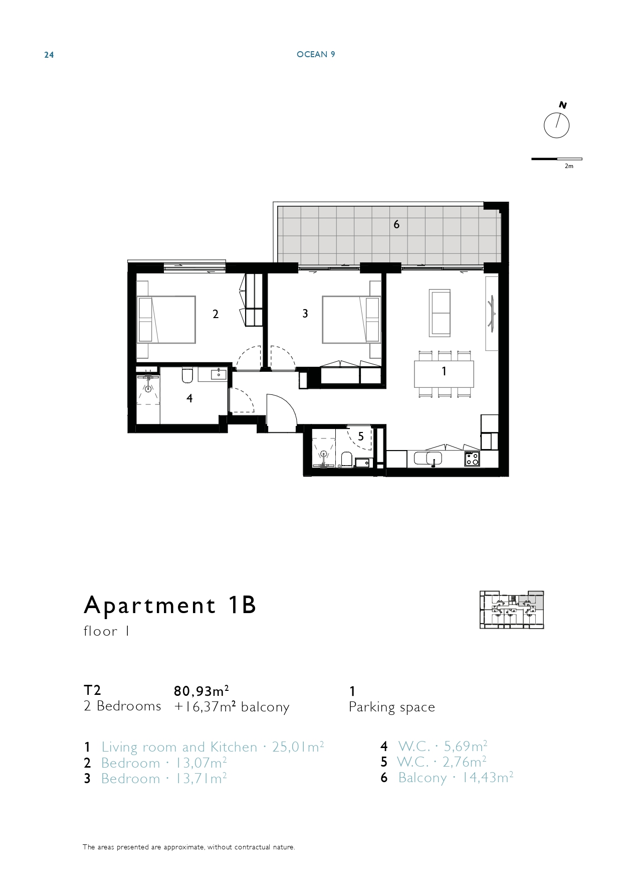 | 1B | 1 | 2 bedrooms | 80,93m2 + 16,40m2 balcony | 1 | Sold | View Floor Plan