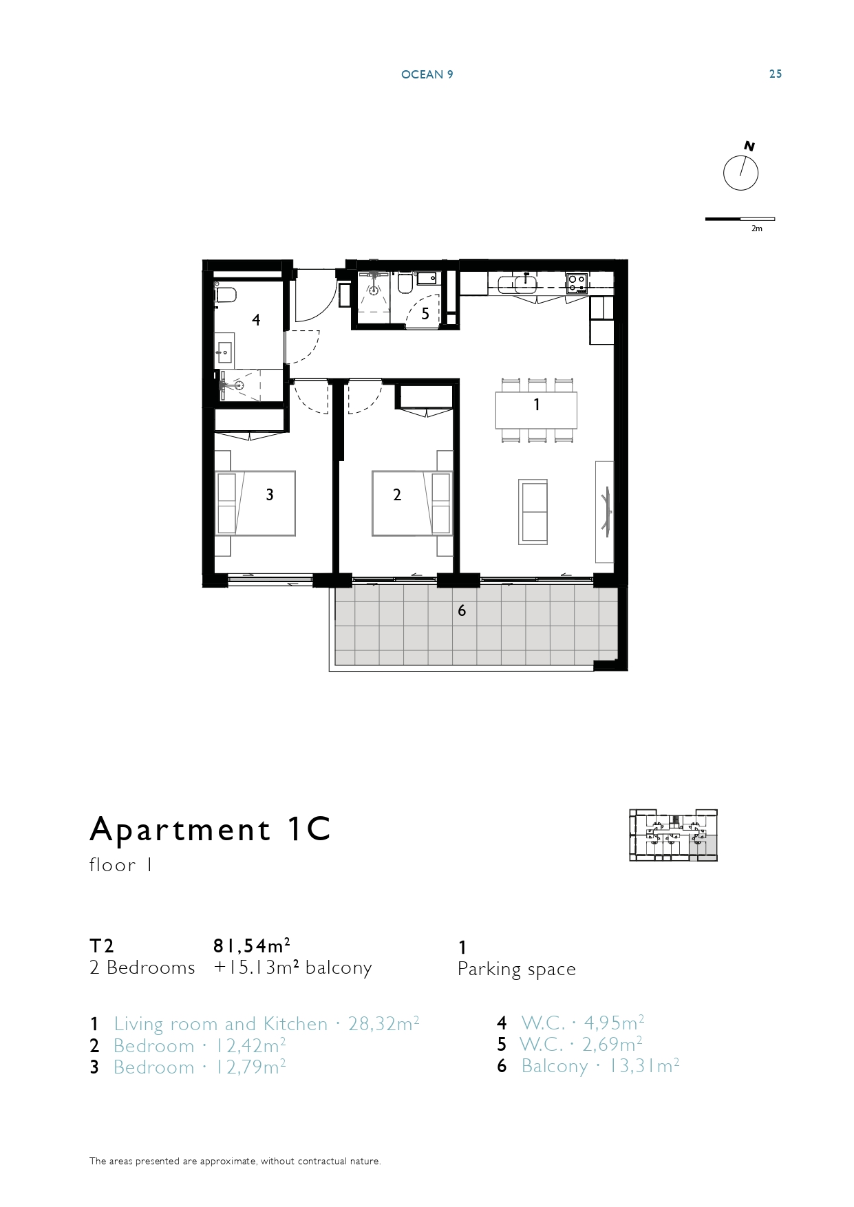 | 1C | 1 | 2 bedrooms | 81,55m2 + 15,15m2 balcony | 1 | Sold | View Floor Plan