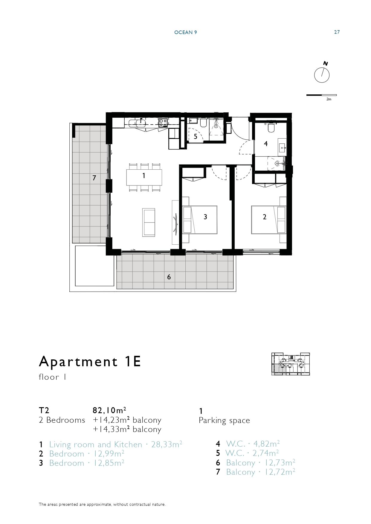 | 1E | 1 | 2 bedrooms | 82,10m2 + 28,60m2 balcony | 1 | Sold | View Floor Plan