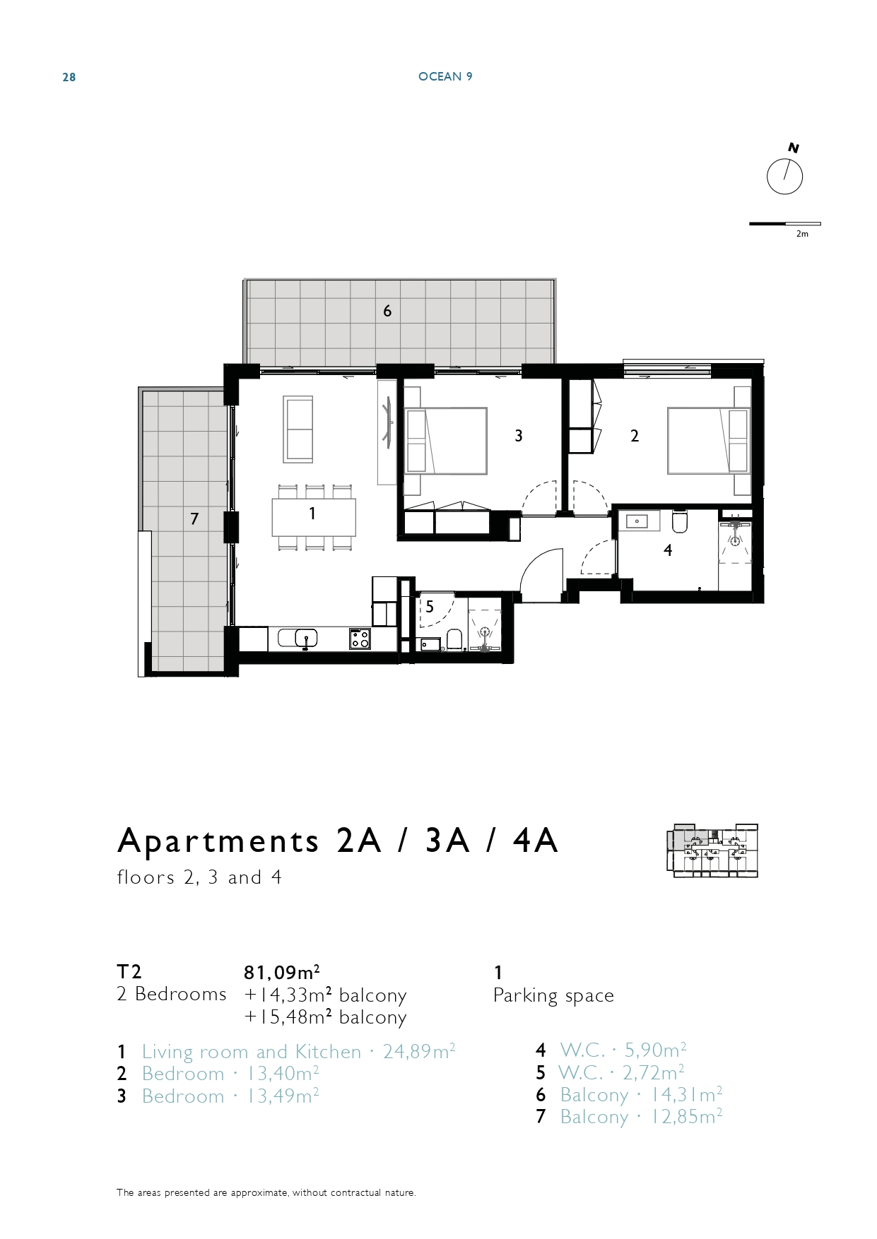 | 2A | 2 | 2 bedrooms | 81,10m2 + 29,80m2 balcony | 1 | Sold | View Floor Plan