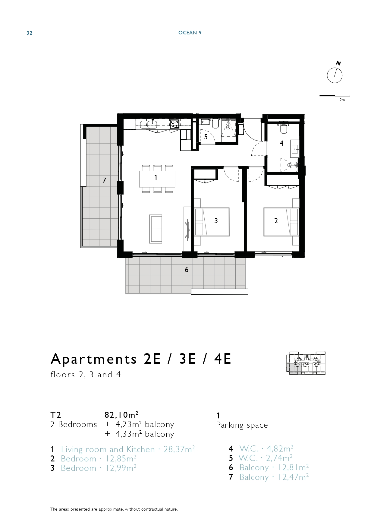 | 2E | 2 | 2 bedrooms | 82,10m2 + 28,55 m2 balcony | 1 | Sold | View Floor Plan