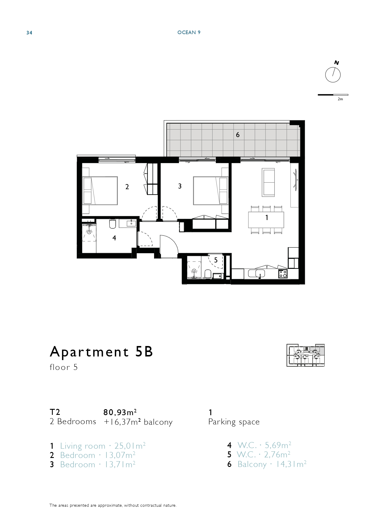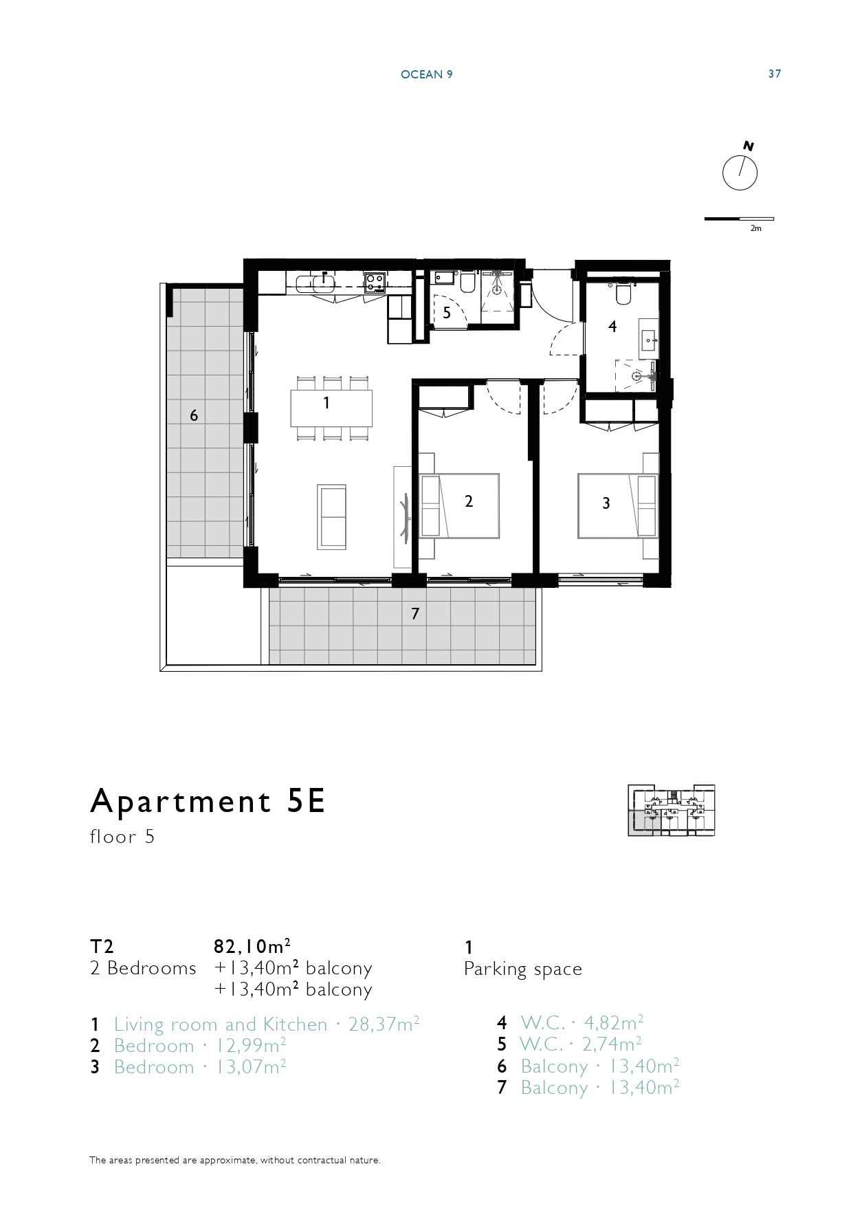 | 5E | 5 | 2 bedrooms | 82,10m2 + 26,80m2 balcony | 1 | Sold | View Floor Plan