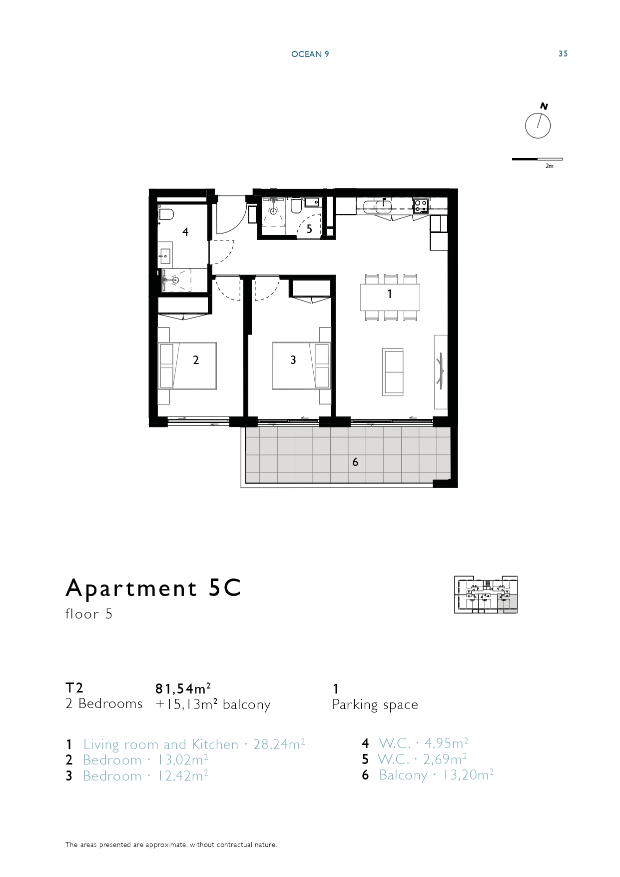| 5C | 5 | 2 bedrooms | 81,55m2 + 15,15m2 balcony | 1 | Sold | View Floor Plan